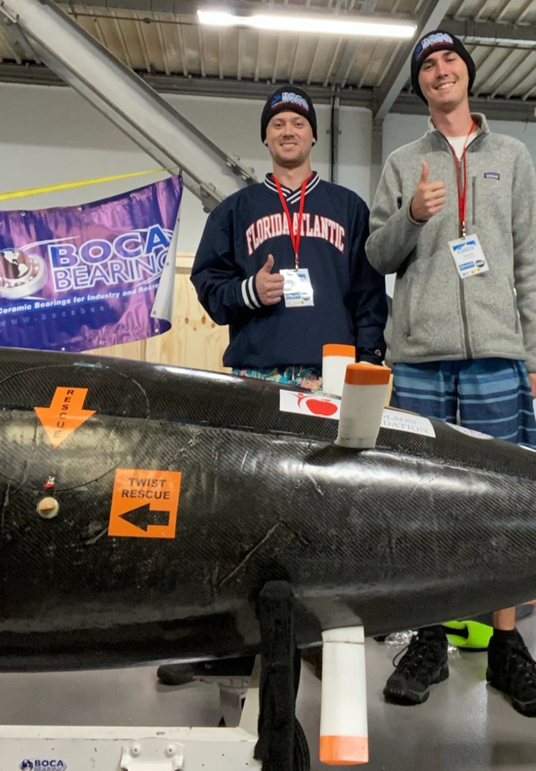 A Human Powered Submarine is ordinarily composed of a main hull, various control surfaces, and complex internal mechanical systems, which are all operated manually by a ‘pilot’ pedaling onboard. All these systems are designed and built primarily from scratch by the students, with guidance and support provided by technical staff and faculty in the Ocean and Mechanical Engineering Department at FAU.