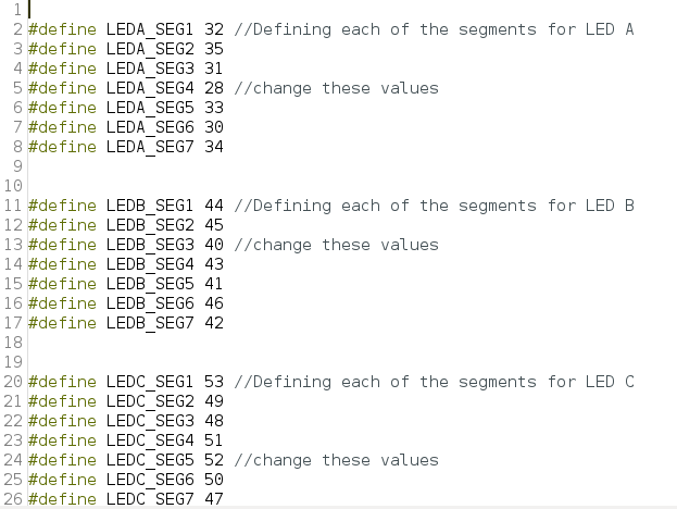 Figure 16: Definitions of LED segment pins in Arduino mega