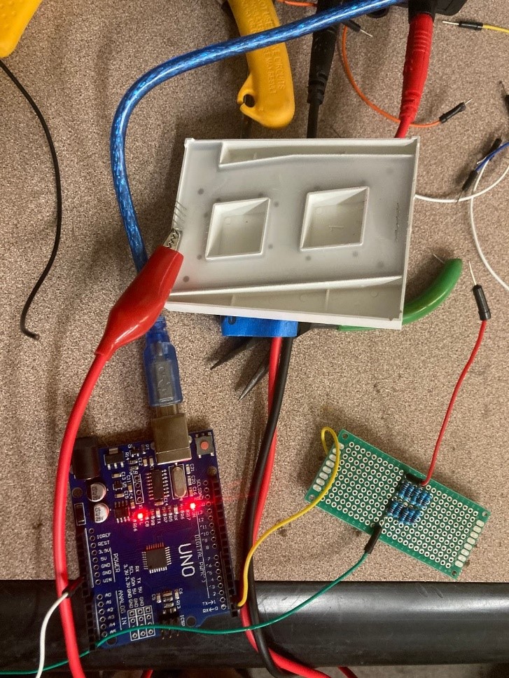Figure 4: Testing the Resistor Design with Arduino and Multimeter